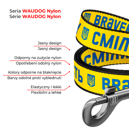 Smycz nylonowa dla psów z efektem WOW marki WAUDOG wykonana z wysokiej jakości, trwałego nylonu, z wykorzystaniem trwałych, metalowych okuć.
