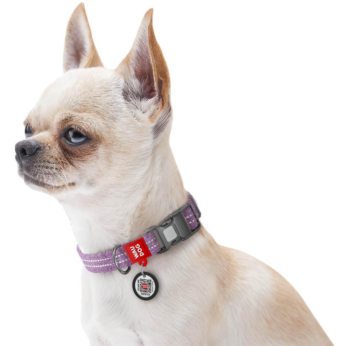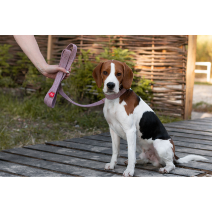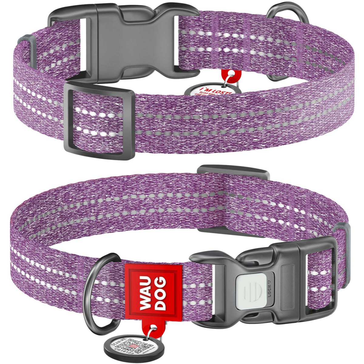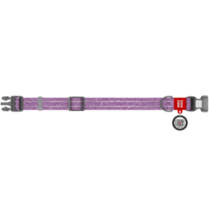 Opis Obroża dla psa WAUDOG Re-cotton z paszportem QR, wykonane z bawełny pochodzącej z recyklingu, plastikowa klamra, fioletowa