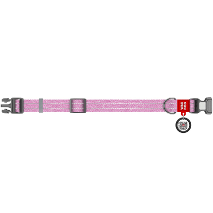 Opis Obroża dla psa WAUDOG Re-cotton z paszportem QR, wykonane z bawełny pochodzącej z recyklingu, plastikowa klamra, różowa