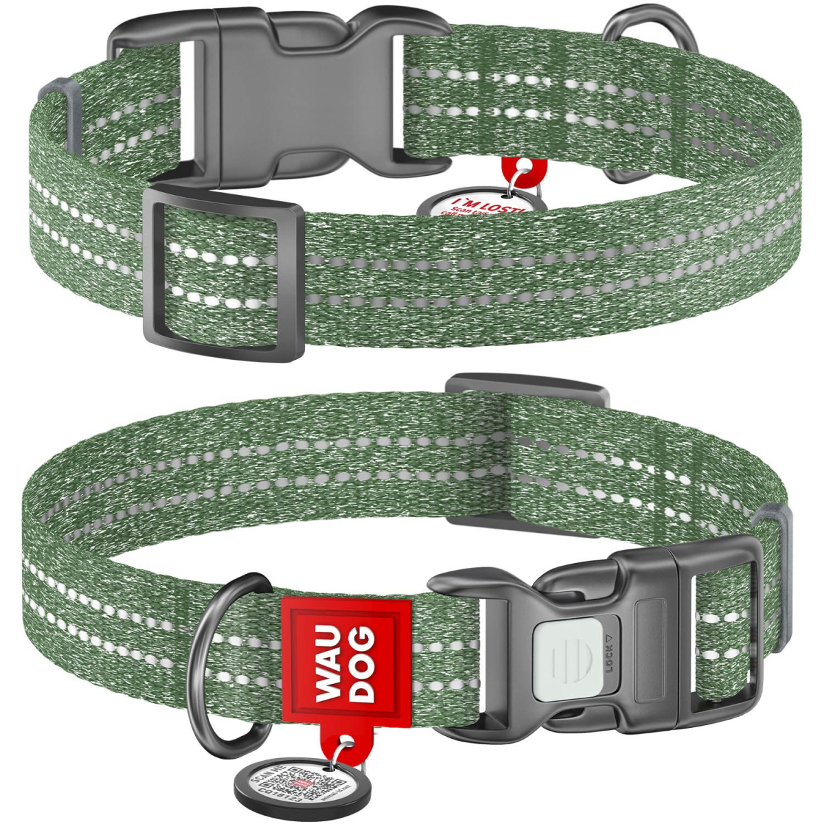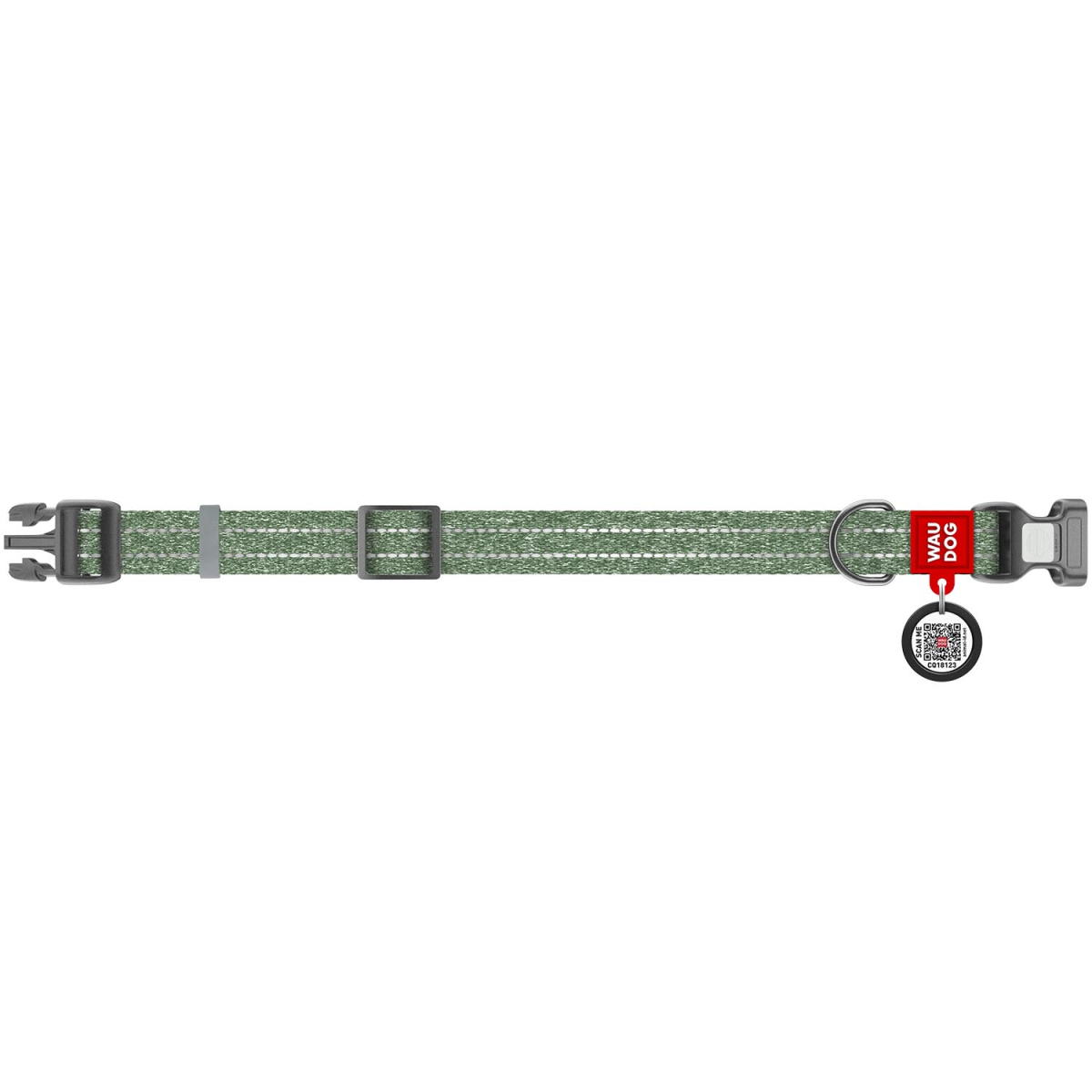 Opis Obroża dla psa WAUDOG Re-cotton z paszportem QR, wykonane z bawełny pochodzącej z recyklingu, plastikowa klamra, zielona